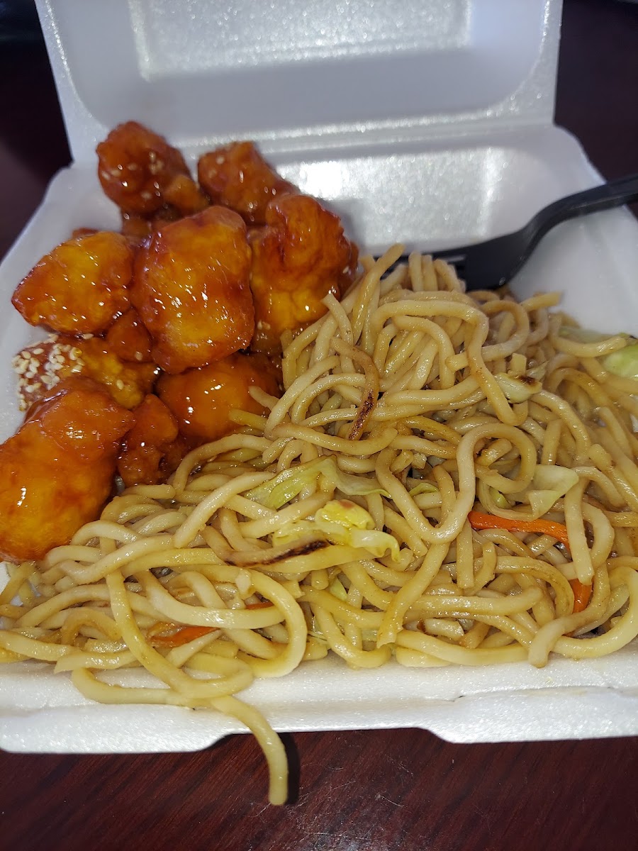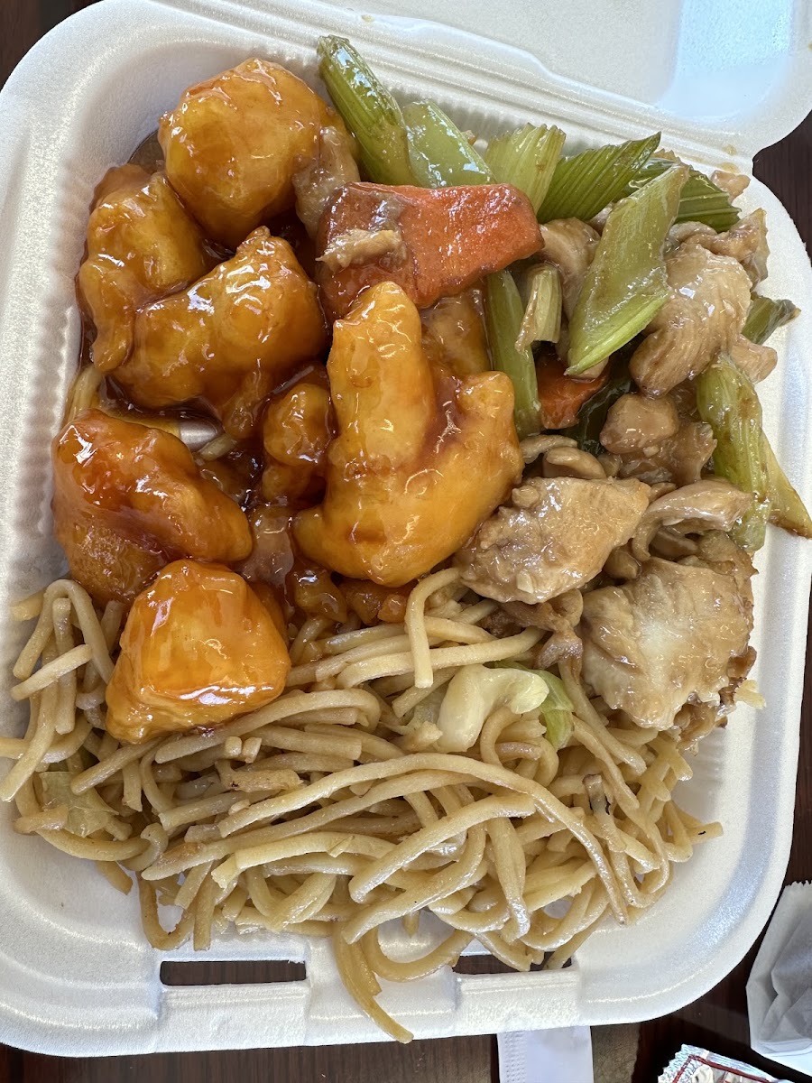 Noodles Pork Vegetables Sweet and Sour Chicken
